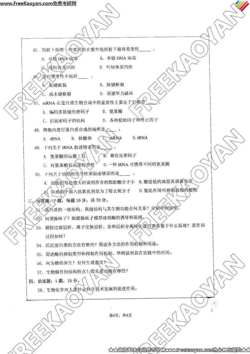 江苏大学2007年考研真题-生物化学(4)