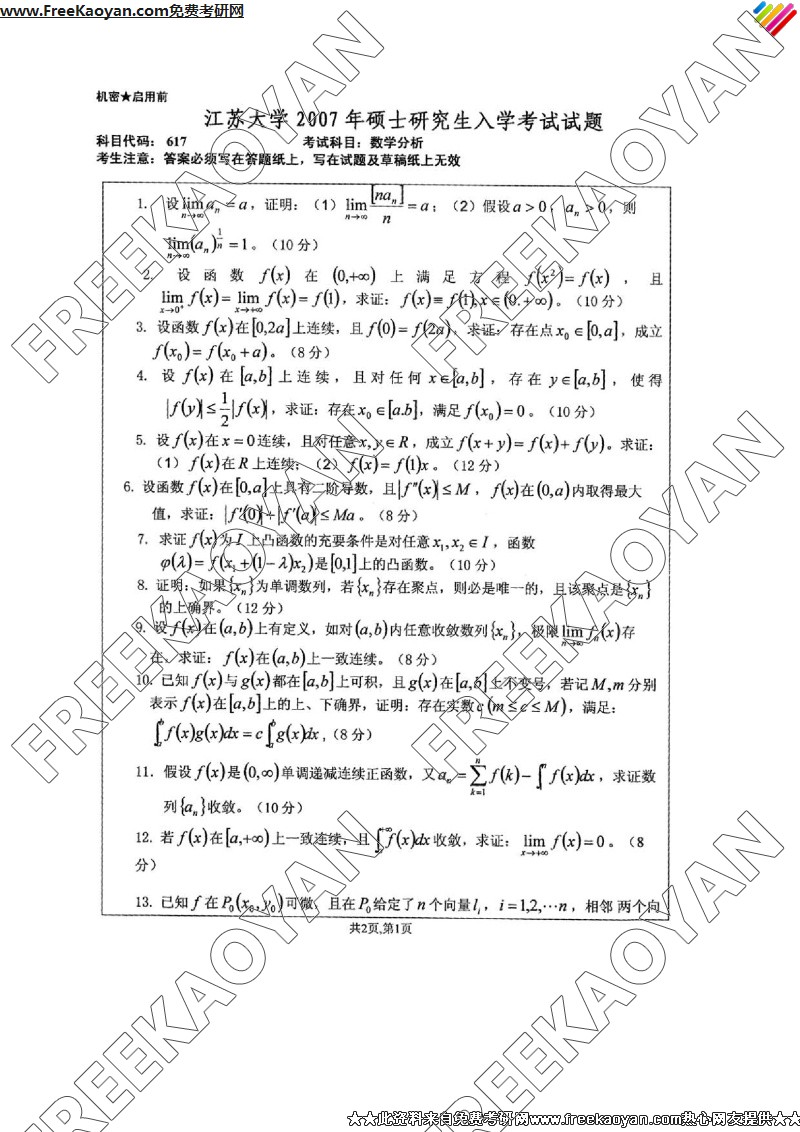 专业课考研经验 本站小编 FreeKaoyan 2018-01-23江苏大学2007年考研真题-普通化学
