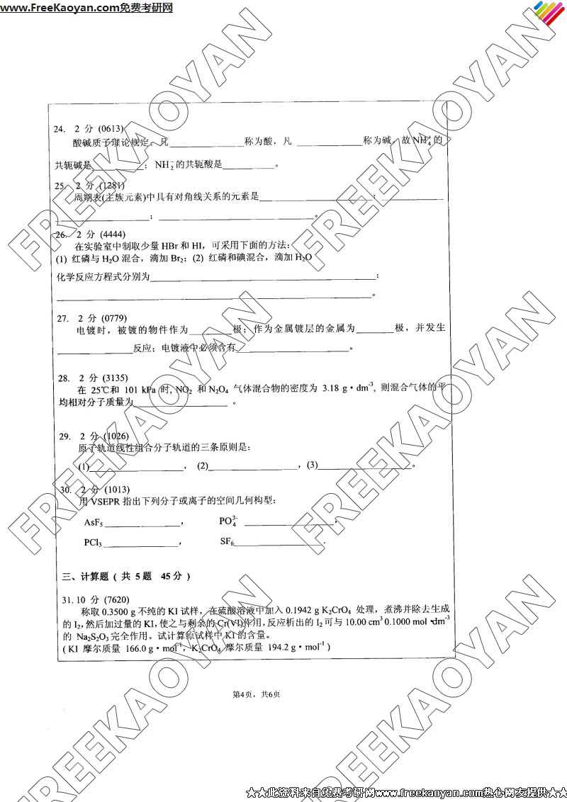江苏大学2007年考研真题-无机化学(4)