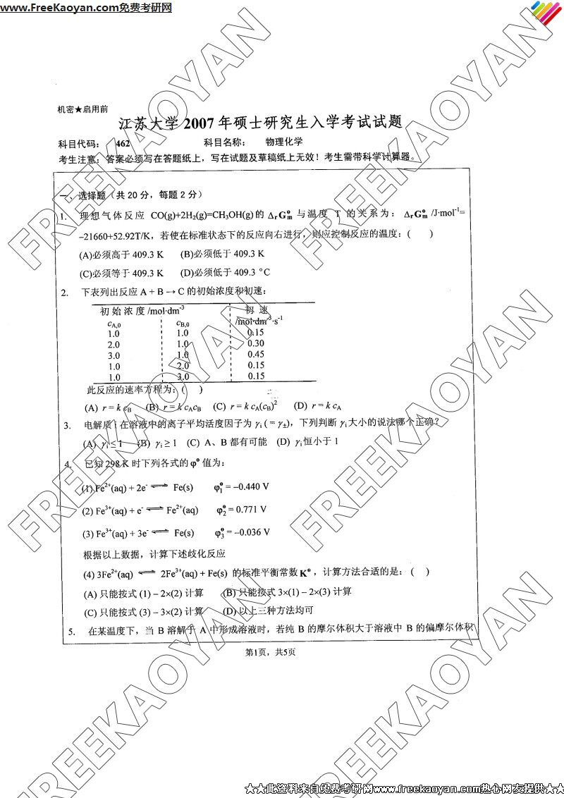 专业课考研经验 本站小编 FreeKaoyan 2018-01-23江苏大学2007年考研真题-无机材料科学基础