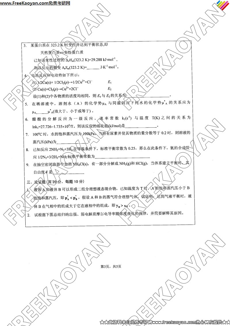 相关话题/江苏大学 考研真题 物理化学