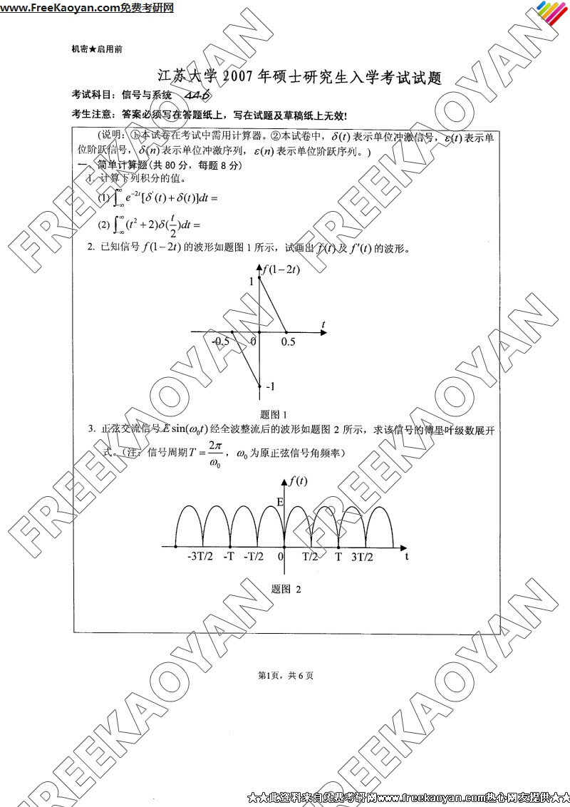 江苏大学2007年考研真题-信号与系统
