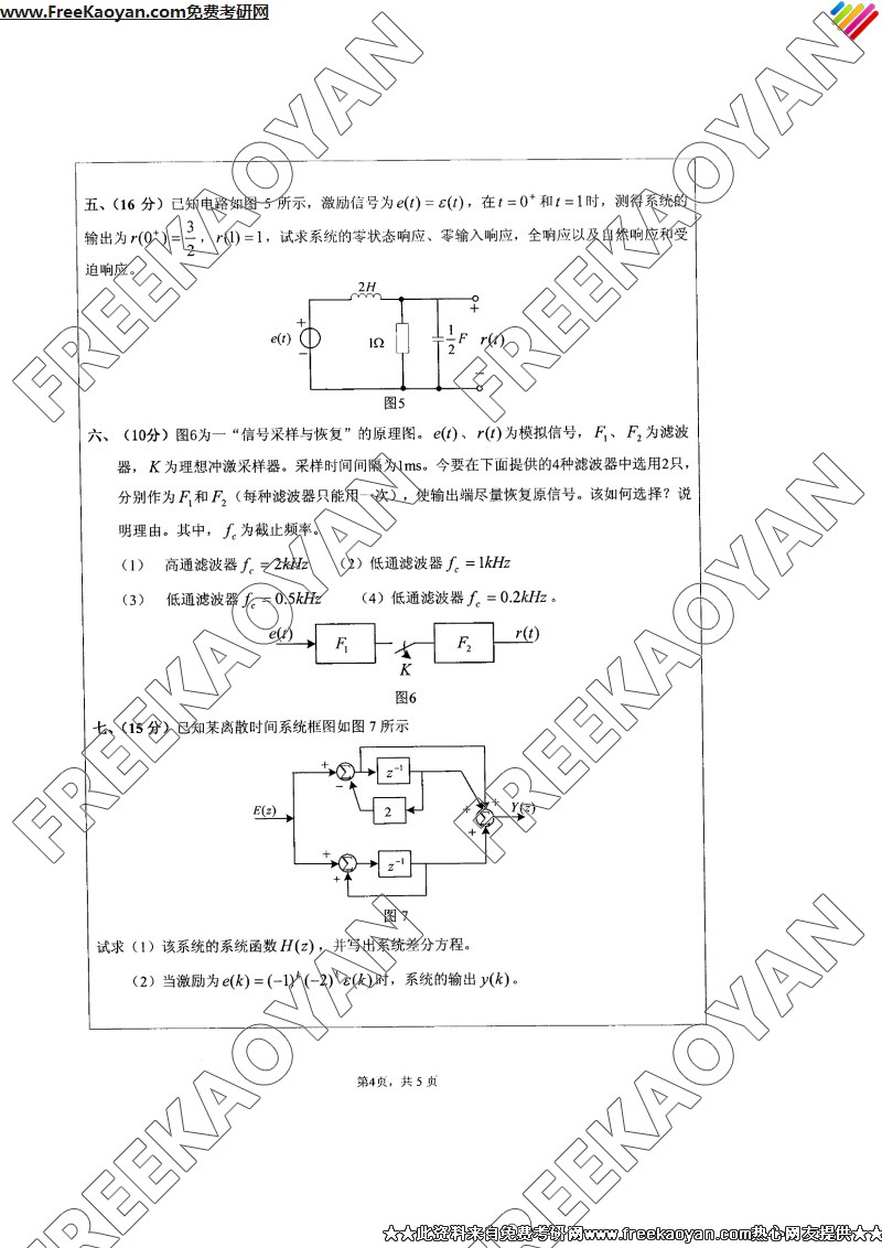 专业课考研经验 本站小编 FreeKaoyan 2018-01-23江苏大学2007年考研真题-信号与系统