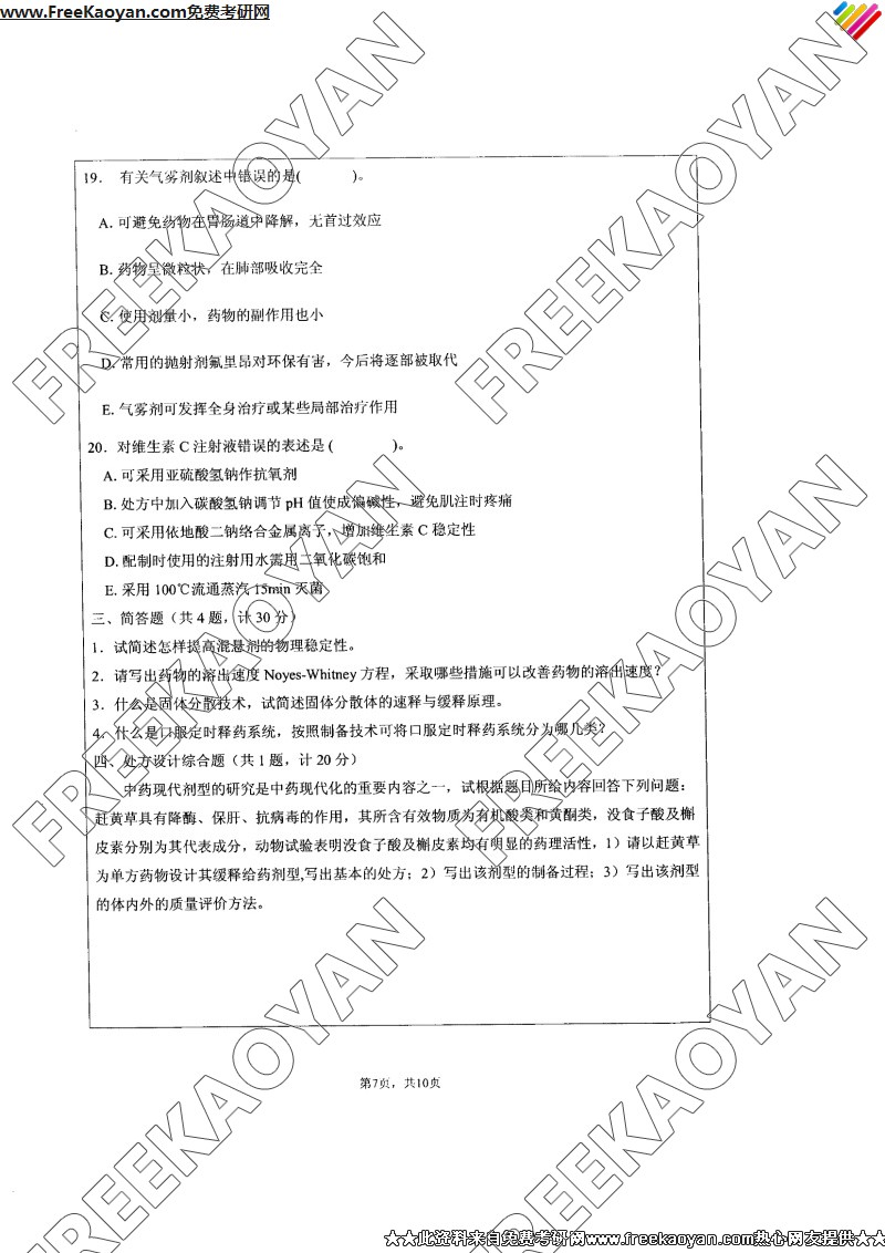 专业课考研经验 本站小编 FreeKaoyan 2018-01-23江苏大学2007年考研真题-物理化学