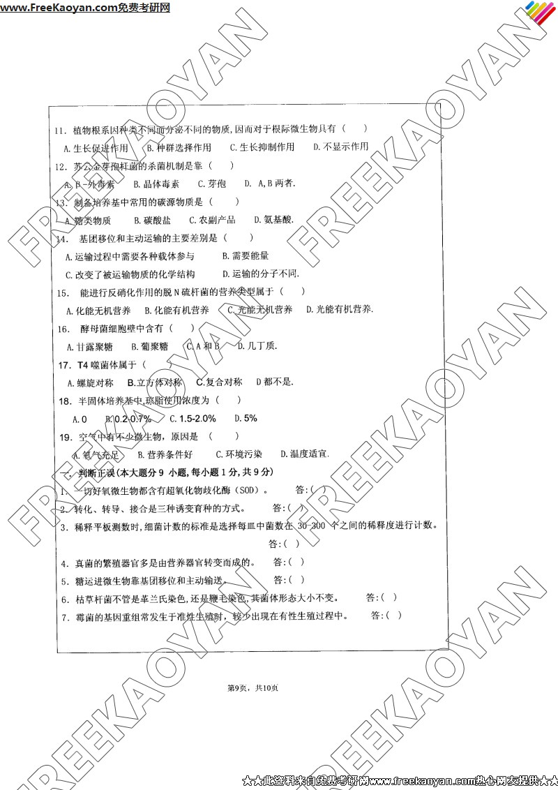 专业课考研经验 本站小编 FreeKaoyan 2018-01-23江苏大学2007年考研真题-微生物学
