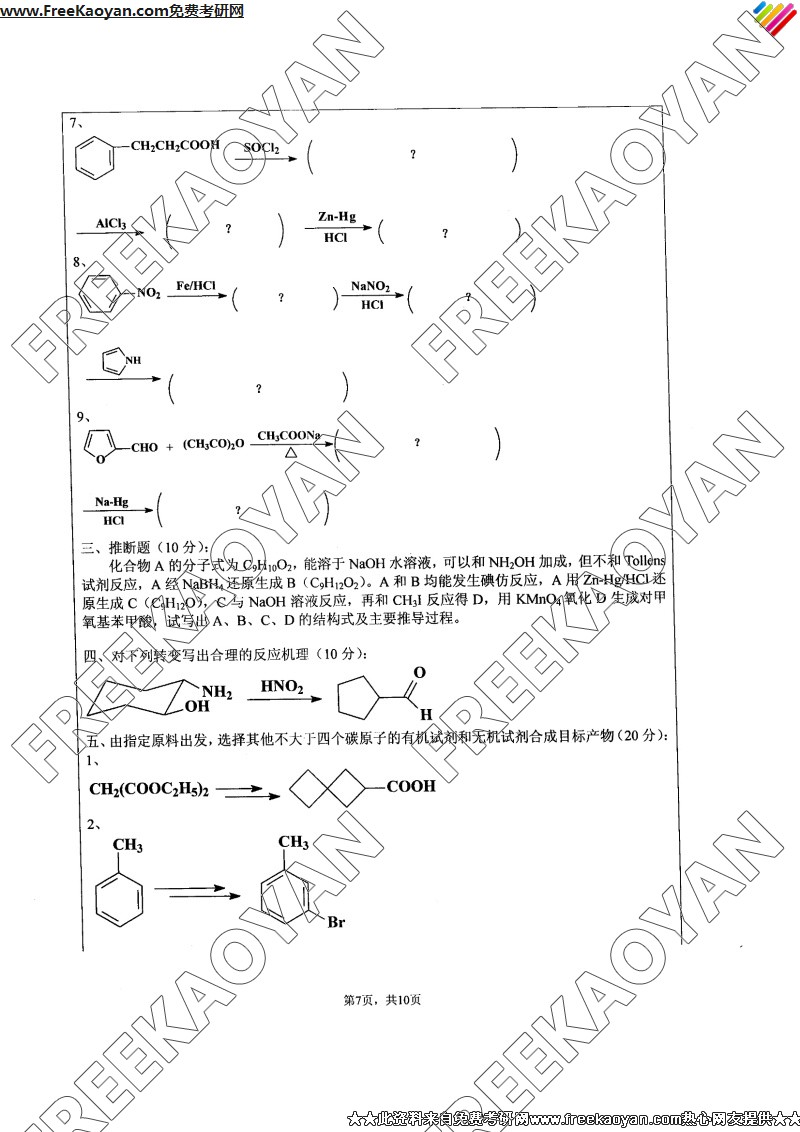 专业课考研经验 本站小编 FreeKaoyan 2018-01-23江苏大学2007年考研真题-无机化学