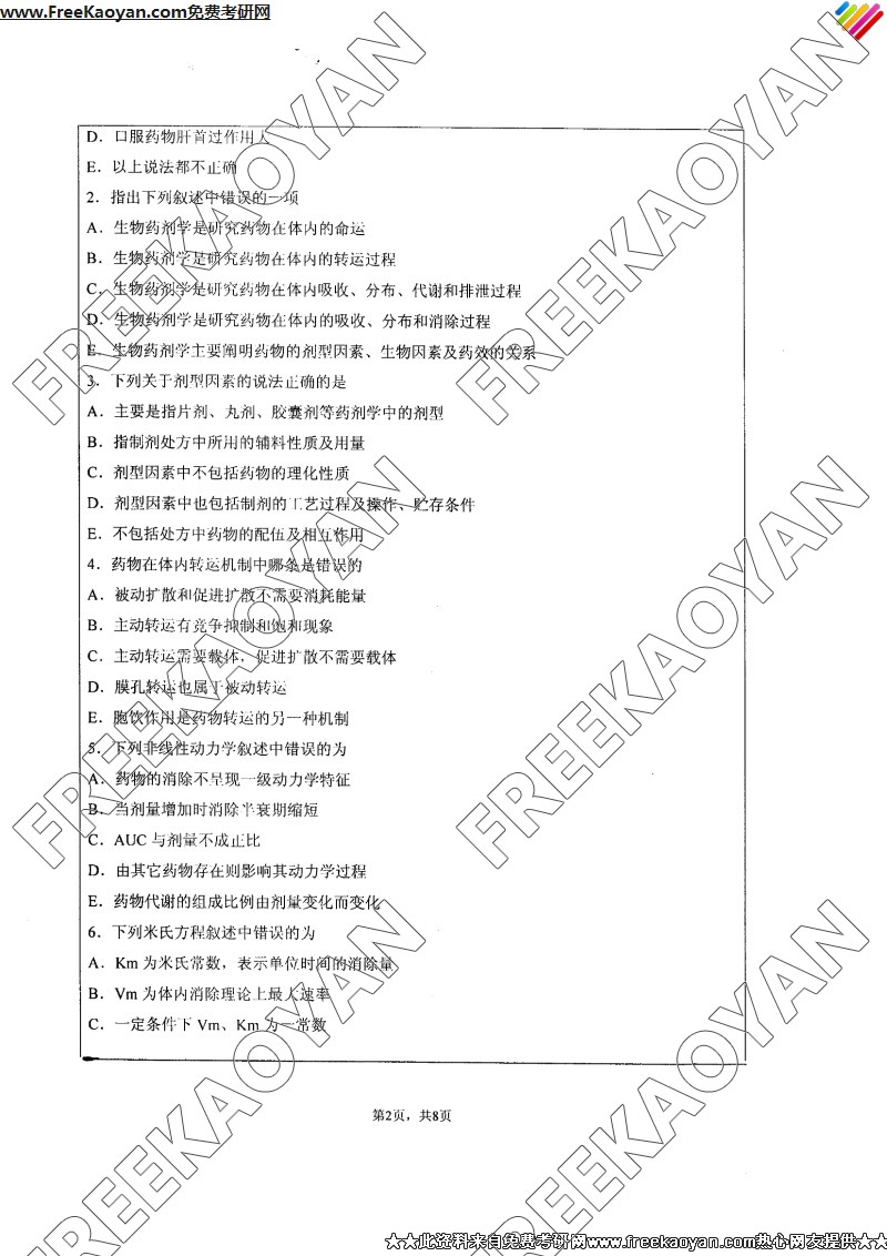 专业课考研经验 本站小编 FreeKaoyan 2018-01-23江苏大学2007年考研真题-药学综合三