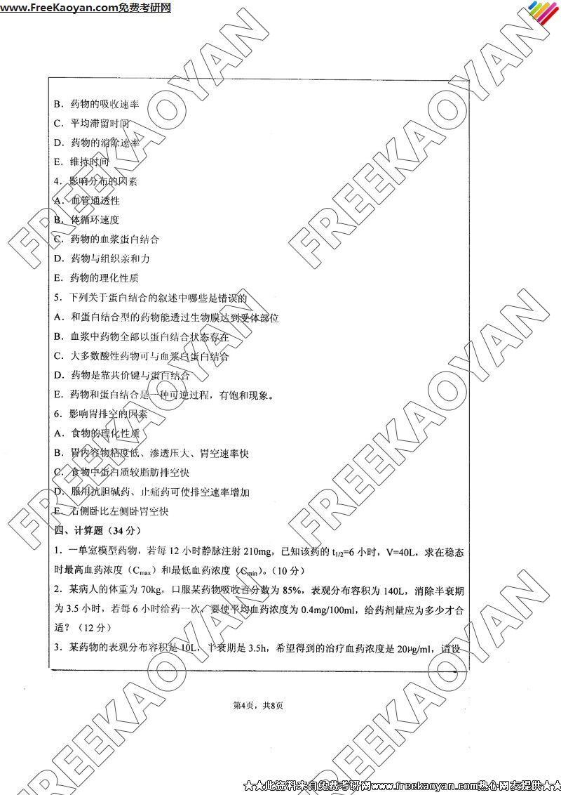 专业课考研经验 本站小编 FreeKaoyan 2018-01-23江苏大学2007年考研真题-药学综合三