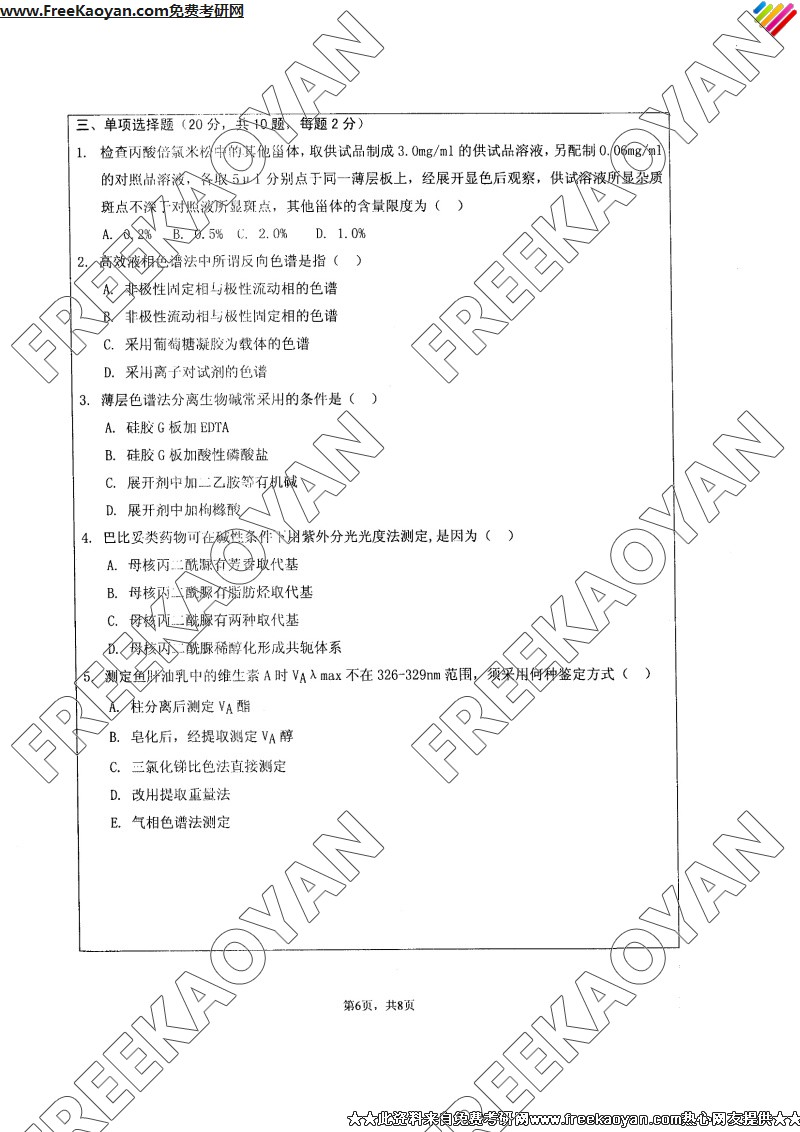 专业课考研经验 本站小编 FreeKaoyan 2018-01-23江苏大学2007年考研真题-药学综合三