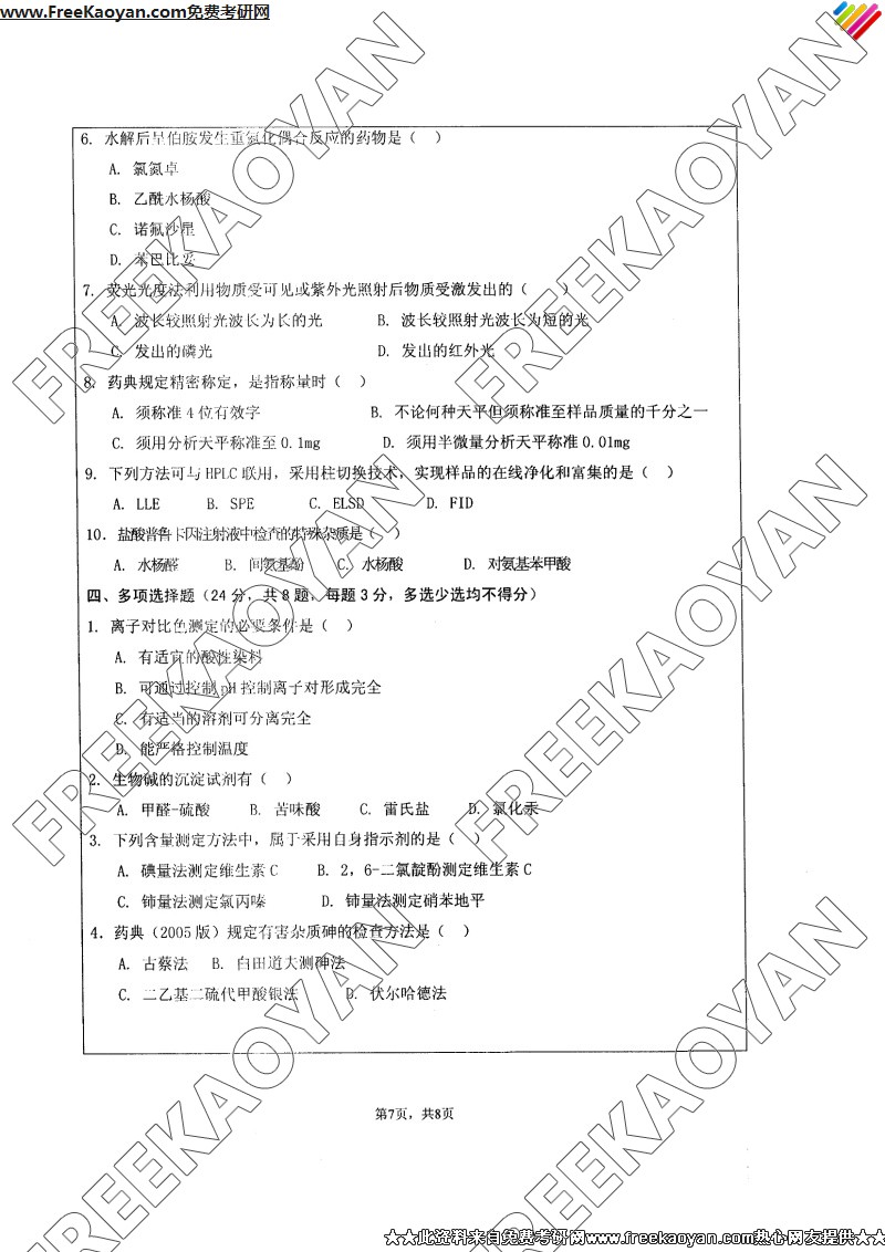 专业课考研经验 本站小编 FreeKaoyan 2018-01-23江苏大学2007年考研真题-药学综合三