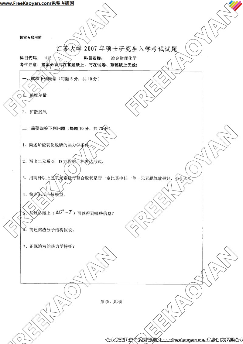相关话题/考研真题 江苏大学 物理化学 冶金
