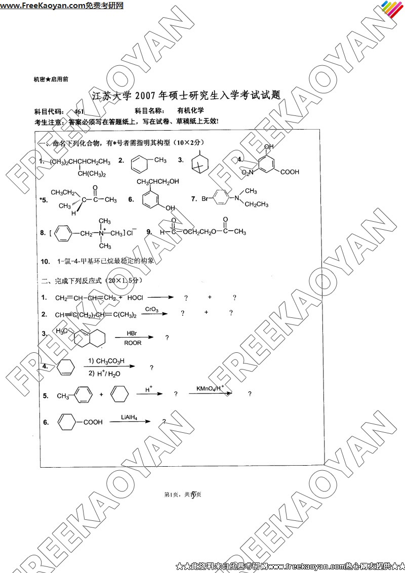 相关话题/江苏大学 考研真题 有机化学