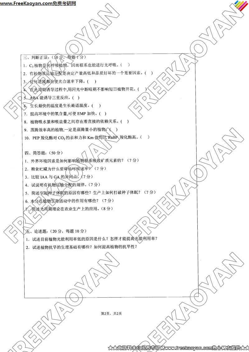 相关话题/考研真题 江苏大学 生理学 植物