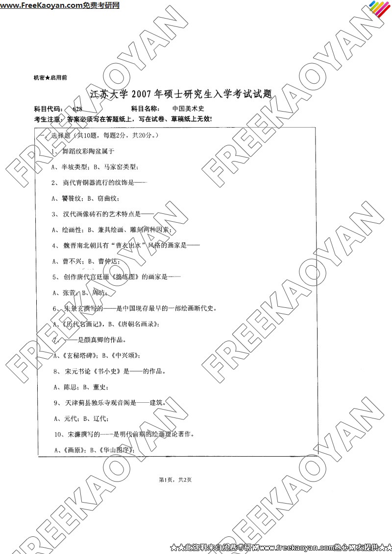 相关话题/江苏大学 考研真题 中国美术史