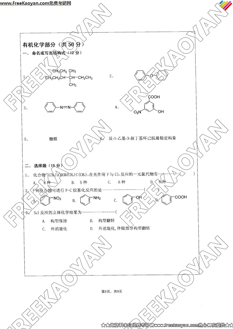 专业课考研经验 本站小编 FreeKaoyan 2018-01-23江苏大学2007年考研真题-有机化学