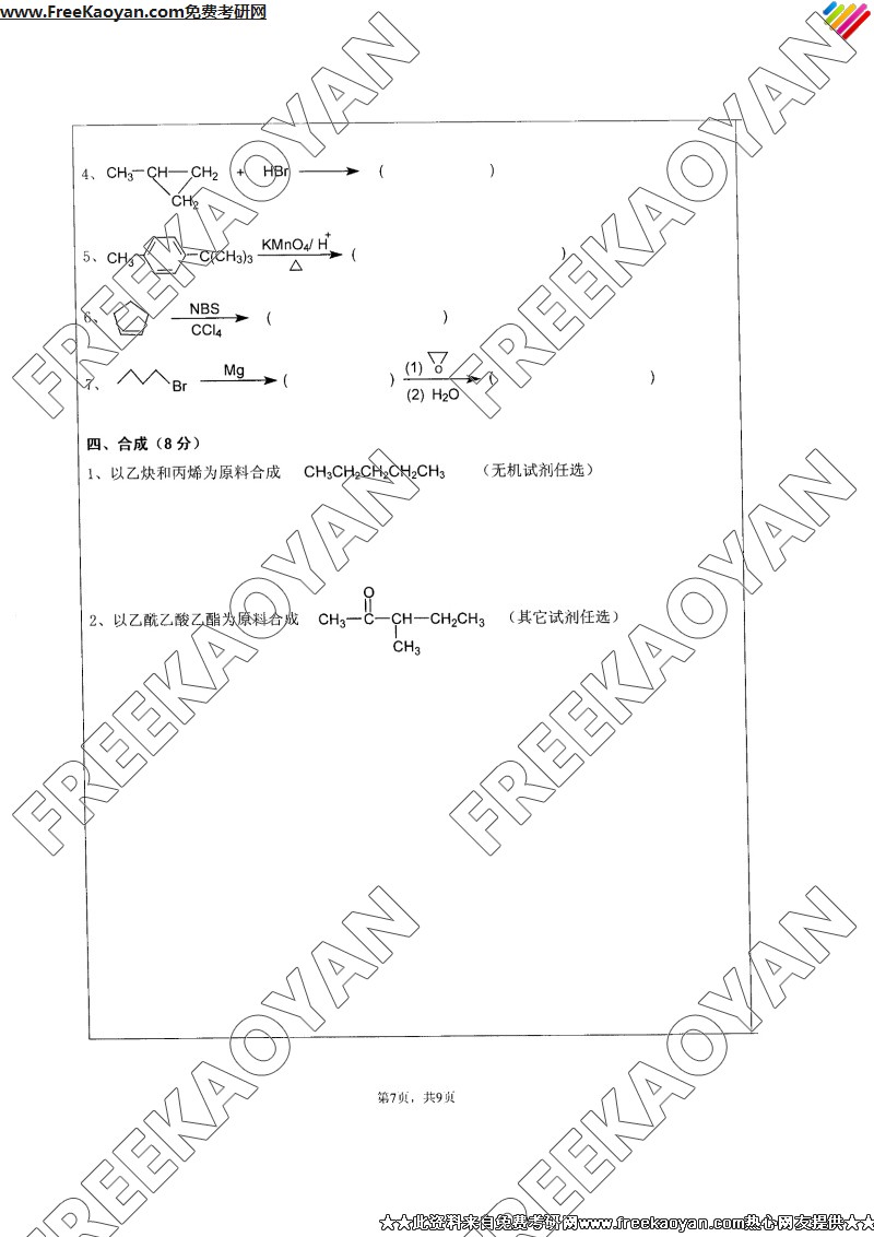 专业课考研经验 本站小编 FreeKaoyan 2018-01-23江苏大学2007年考研真题-有机化学