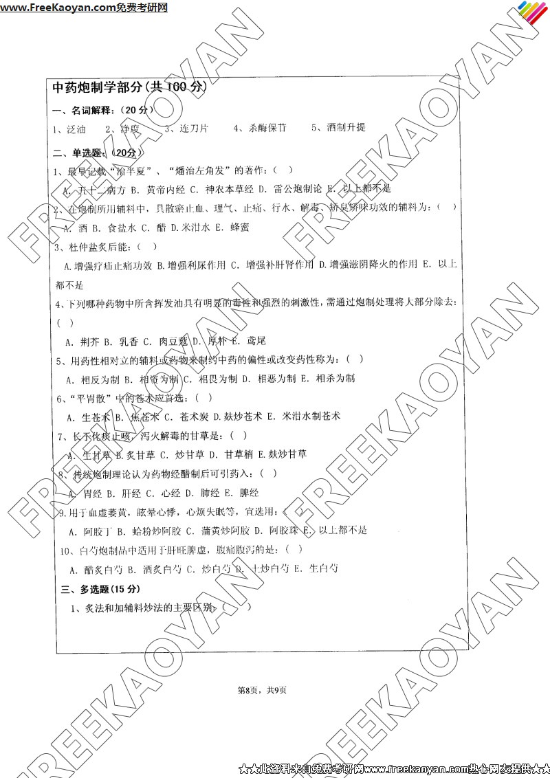 专业课考研经验 本站小编 FreeKaoyan 2018-01-23江苏大学2007年考研真题-药学综合一