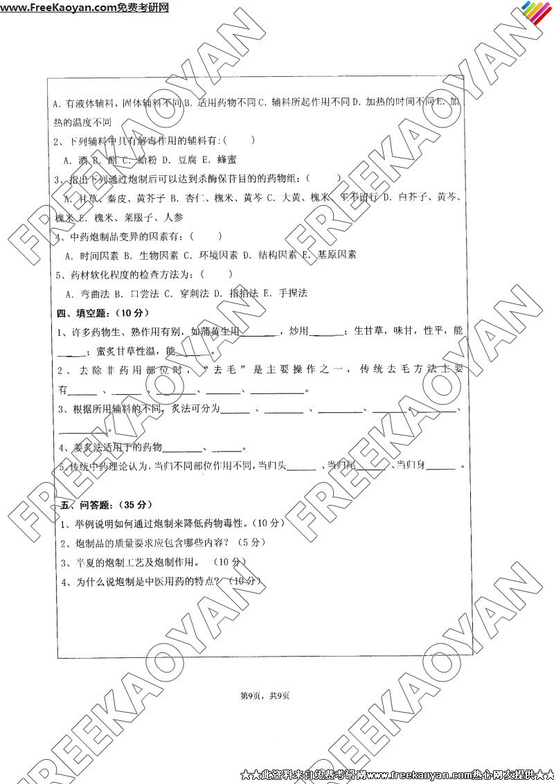 江苏大学2007年考研真题-中药综合(9)
