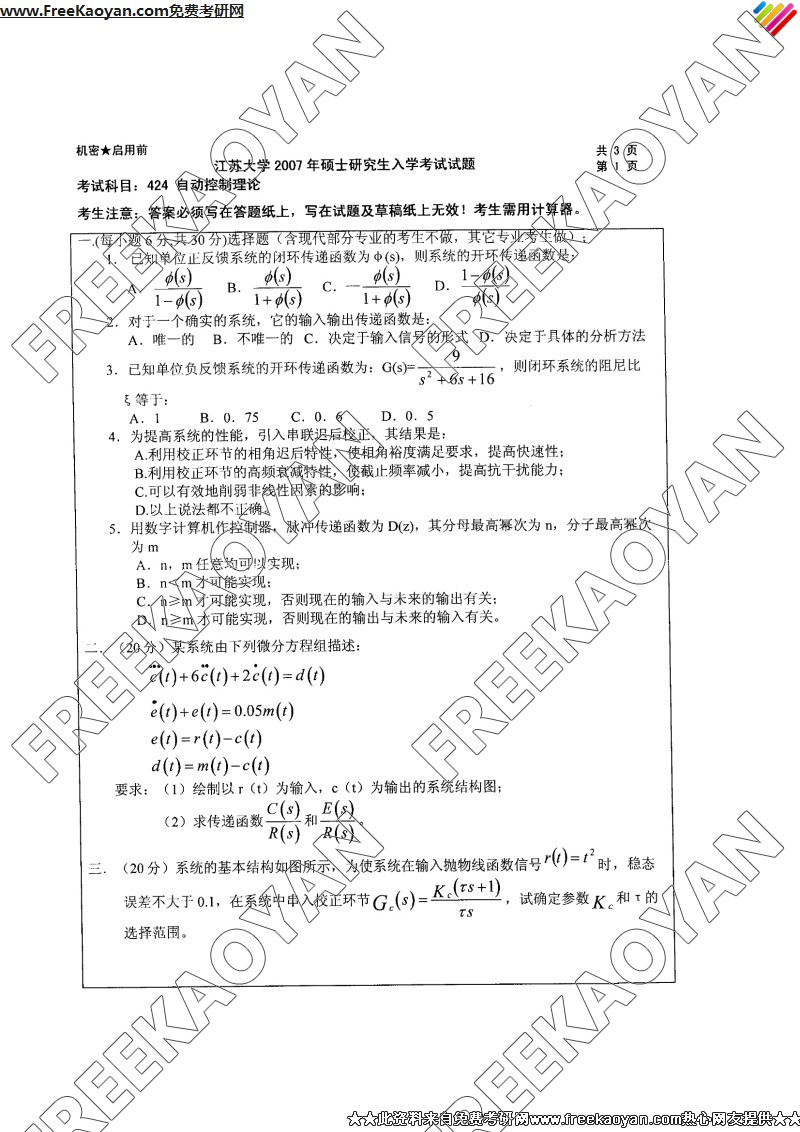 专业课考研经验 本站小编 FreeKaoyan 2018-01-23江苏大学2007年考研真题-信号与线性系统