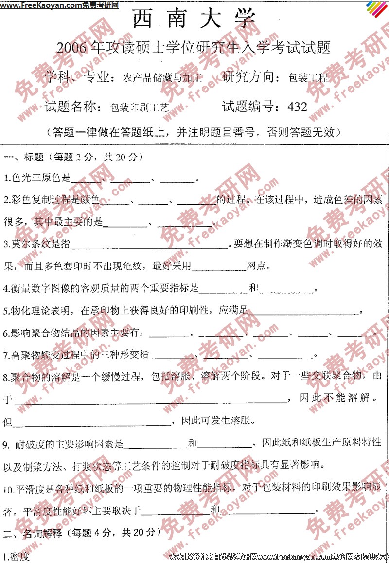 专业课考研经验 本站小编 FreeKaoyan 2018-01-23江苏大学2007年考研真题-药学综合二