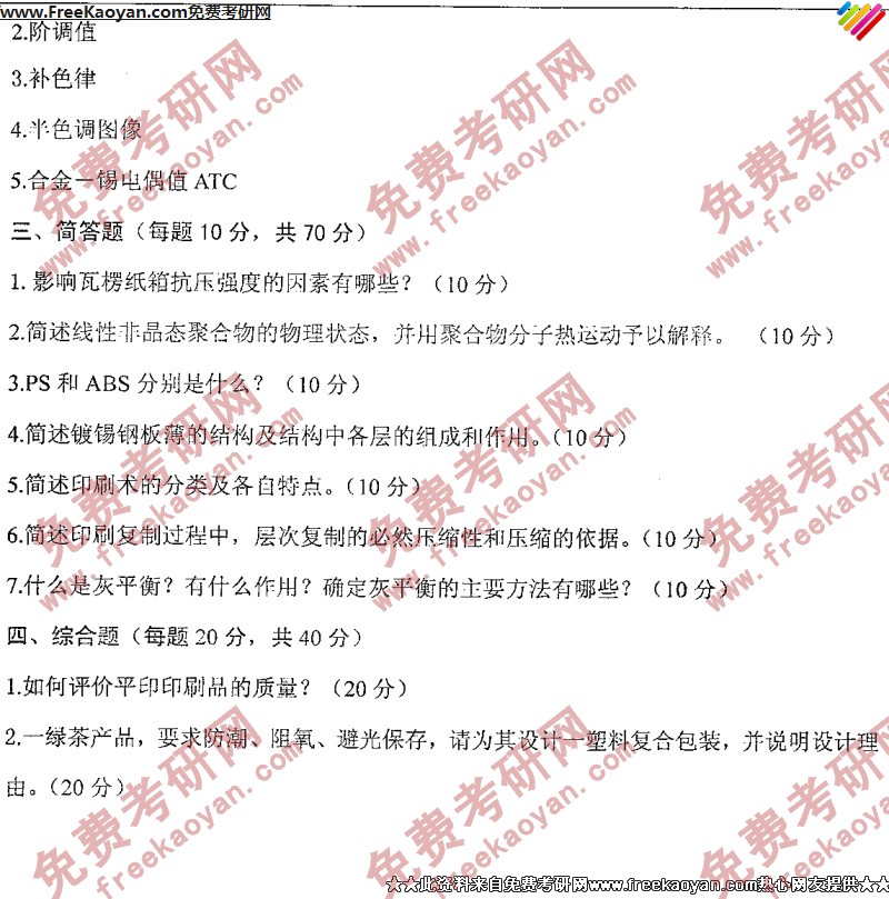 西南大学2006年考研真题-包装印刷工艺(2)