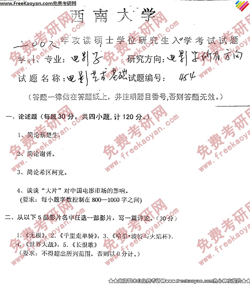 相关话题/考研真题 西南大学 电影 基础 艺术