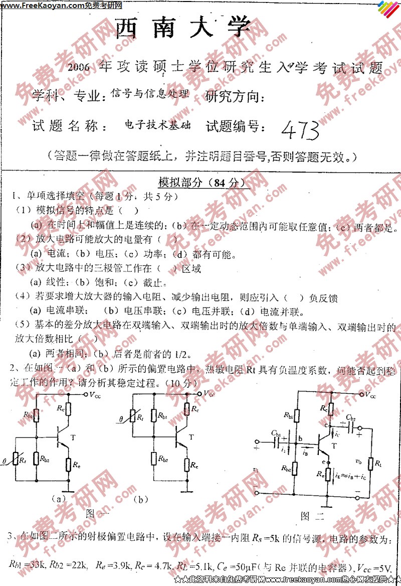 专业课考研经验 本站小编 FreeKaoyan 2018-01-23西南大学2006年考研真题-包装印刷工艺