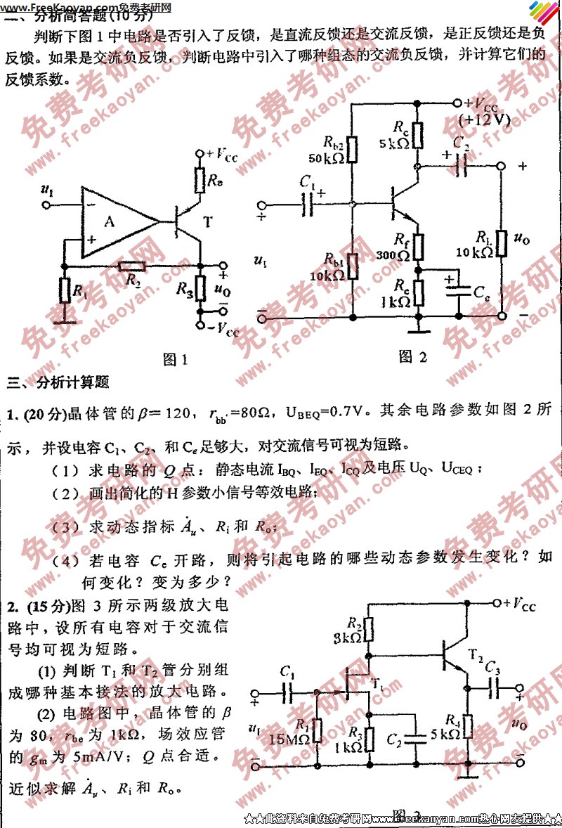 专业课考研经验 本站小编 FreeKaoyan 2018-01-23西南大学2006年考研真题-电子技术基础