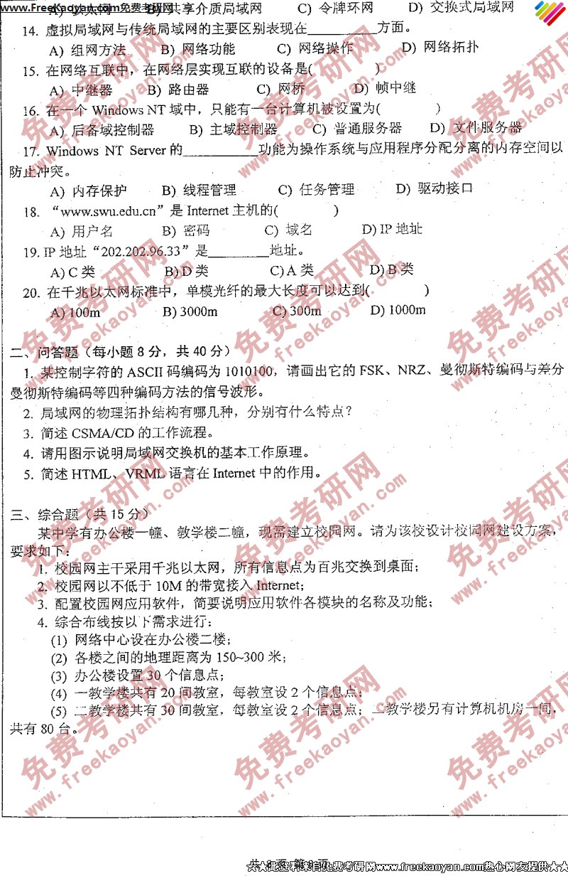 专业课考研经验 本站小编 FreeKaoyan 2018-01-23西南大学2006年考研真题-货币银行学
