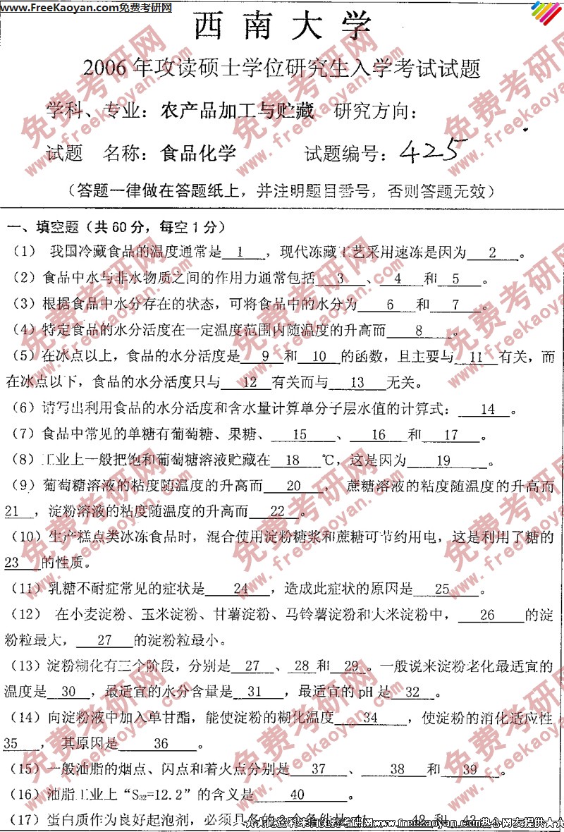 专业课考研经验 本站小编 FreeKaoyan 2018-01-23西南大学2006年考研真题-生物化学