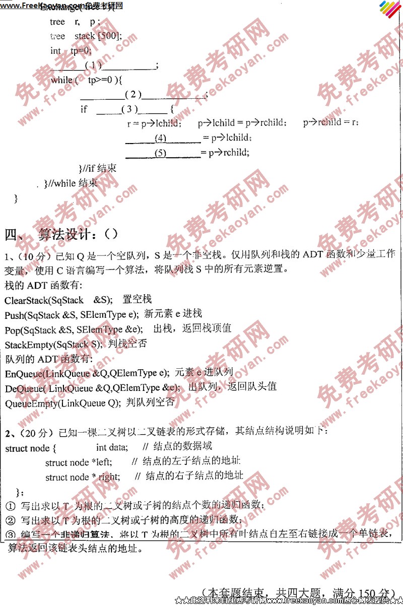 西南大学2006年考研真题-数据结构含程序设计(5)