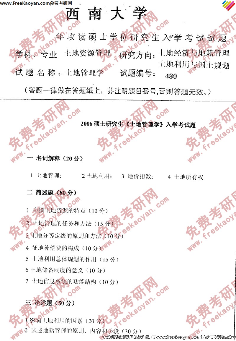 专业课考研经验 本站小编 FreeKaoyan 2018-01-23西南大学2006年考研真题-社会学