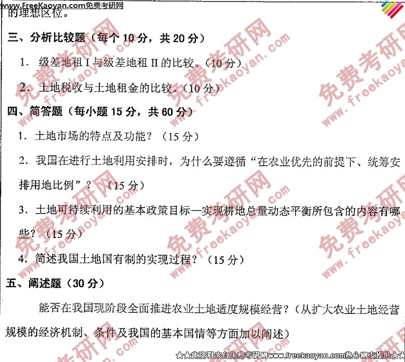 专业课考研经验 本站小编 FreeKaoyan 2018-01-23西南大学2006年考研真题-土地管理学