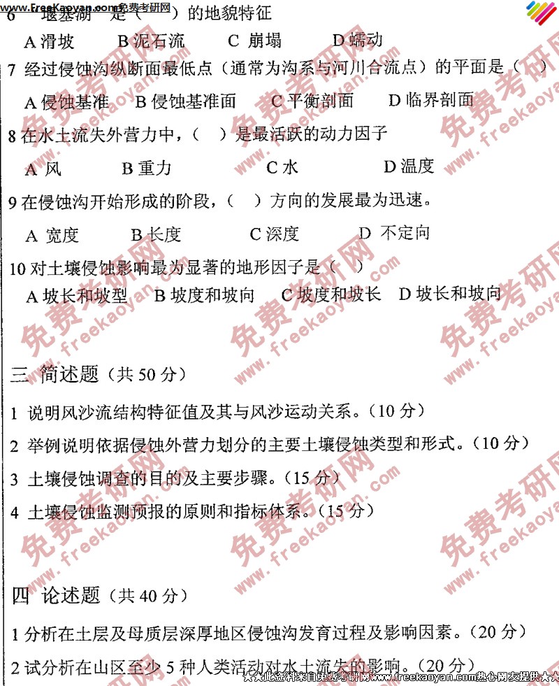 西南大学2006年考研真题-土壤侵蚀原理(2)
