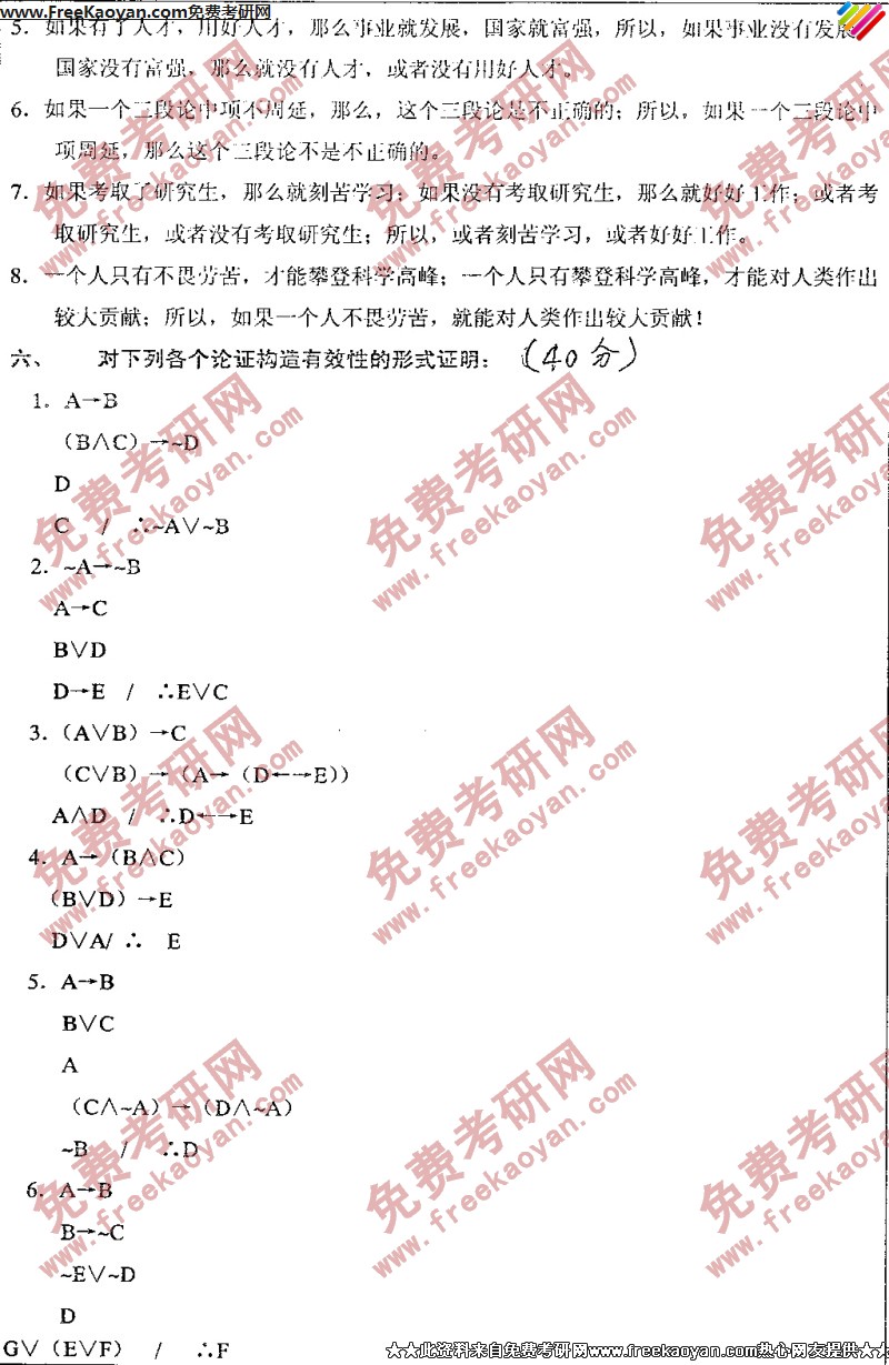 相关话题/考研真题 西南大学 形式逻辑