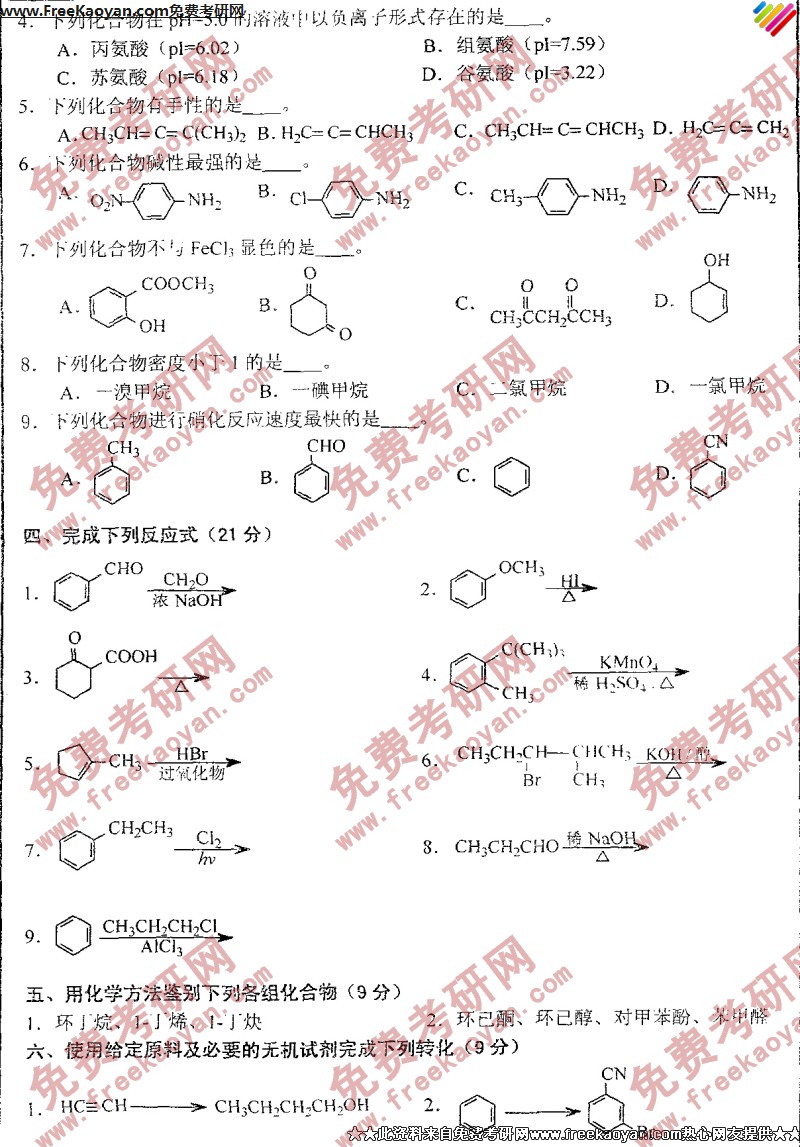 相关话题/西南大学 考研真题 有机化学