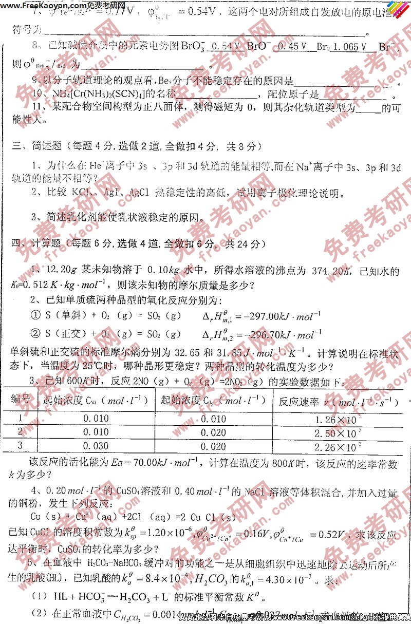专业课考研经验 本站小编 FreeKaoyan 2018-01-23西南大学2006年考研真题-无机及分析化学