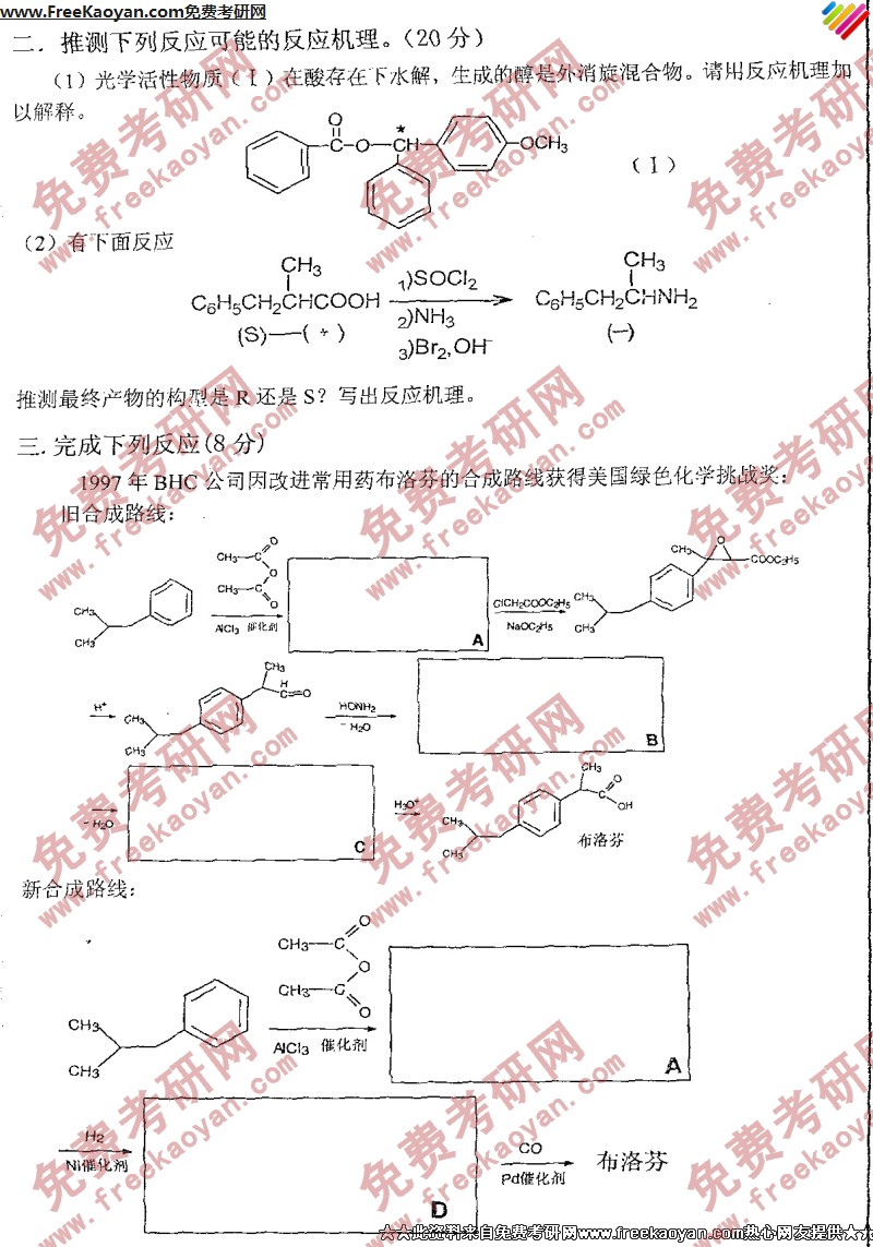 相关话题/考研真题 西南大学 物理化学 有机化学