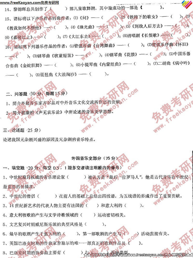 相关话题/考研真题 西南大学 音乐史 中外