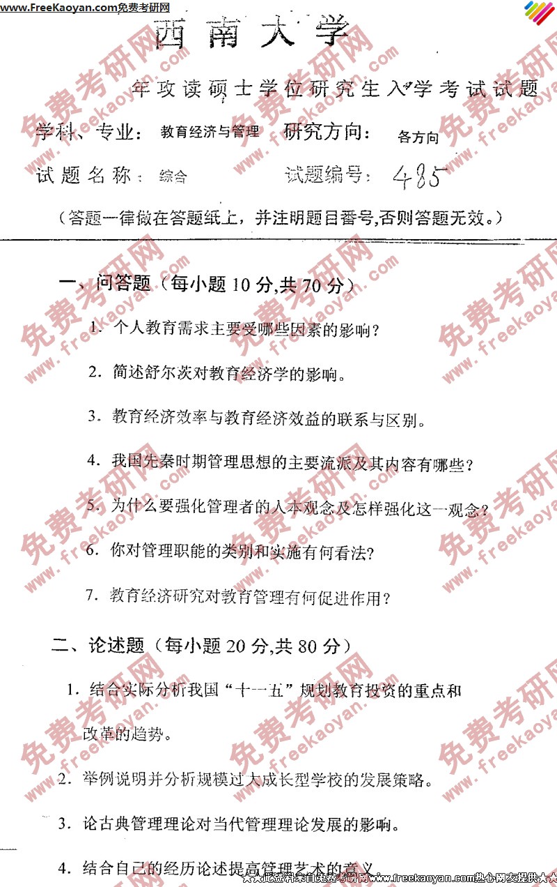相关话题/西南大学 考研真题 综合