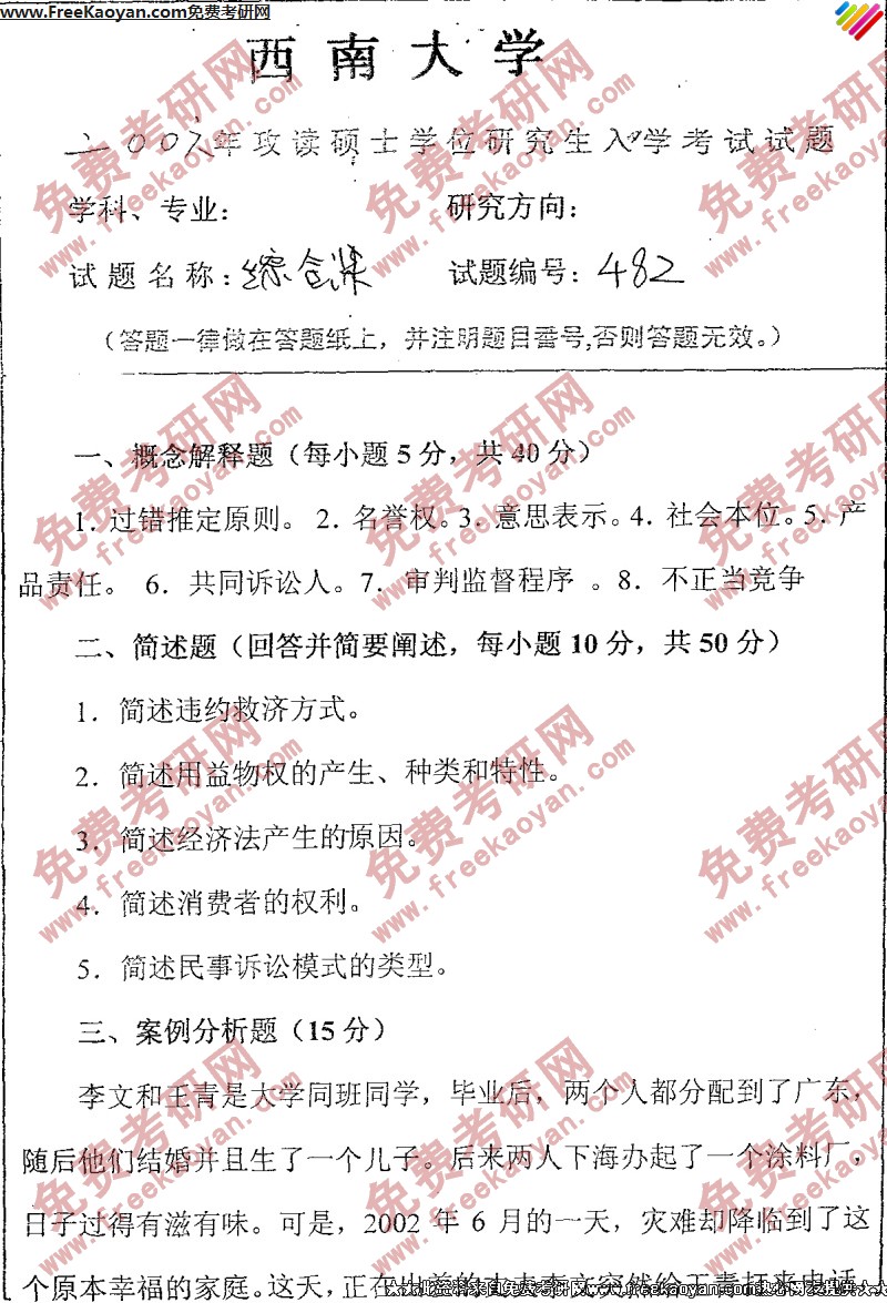 专业课考研经验 本站小编 FreeKaoyan 2018-01-23西南大学2006年考研真题-中国古代史