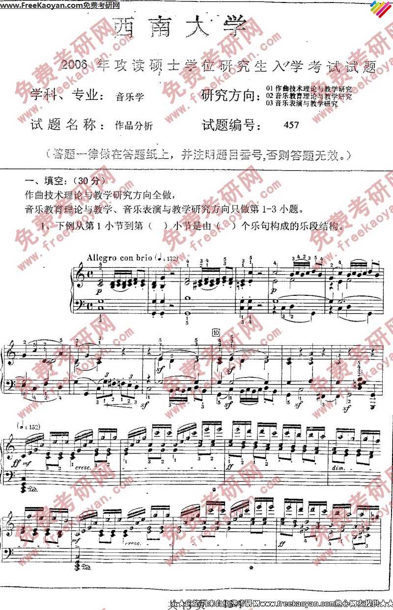 专业课考研经验 本站小编 FreeKaoyan 2018-01-23西南大学2006年考研真题-中外音乐史