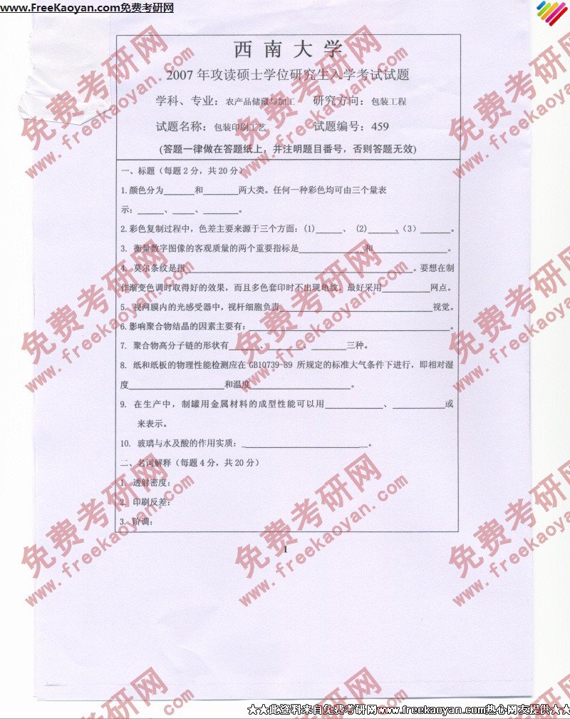专业课考研经验 本站小编 FreeKaoyan 2018-01-23西南大学2006年考研真题-综合
