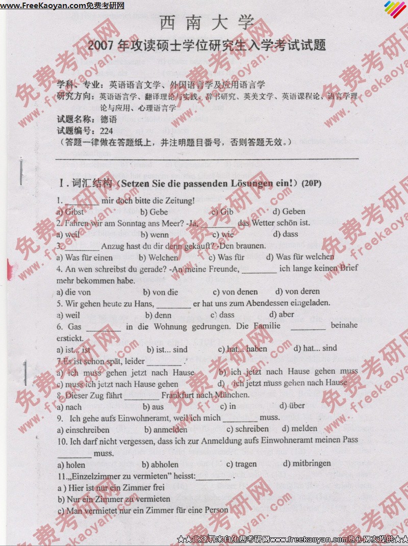 专业课考研经验 本站小编 FreeKaoyan 2018-01-23西南大学2006年考研真题-综合
