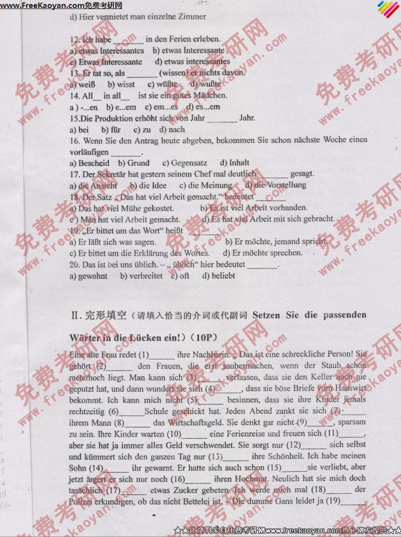 专业课考研经验 本站小编 FreeKaoyan 2018-01-23西南大学2006年考研真题-综合