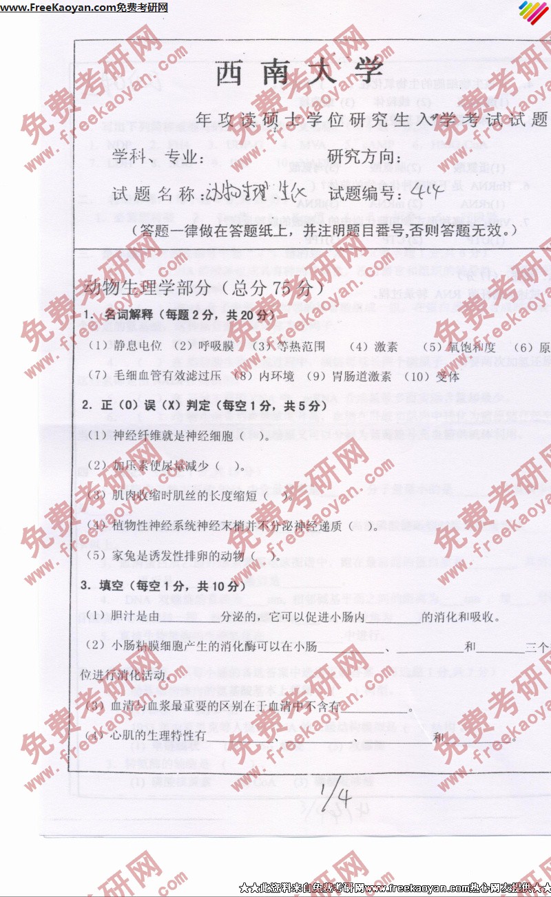 相关话题/动物 考研真题 西南大学 生理 生化