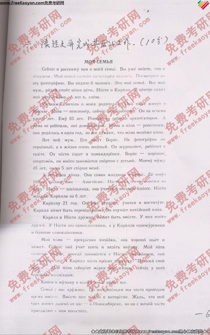 西南大学2007年考研真题-俄语(6)