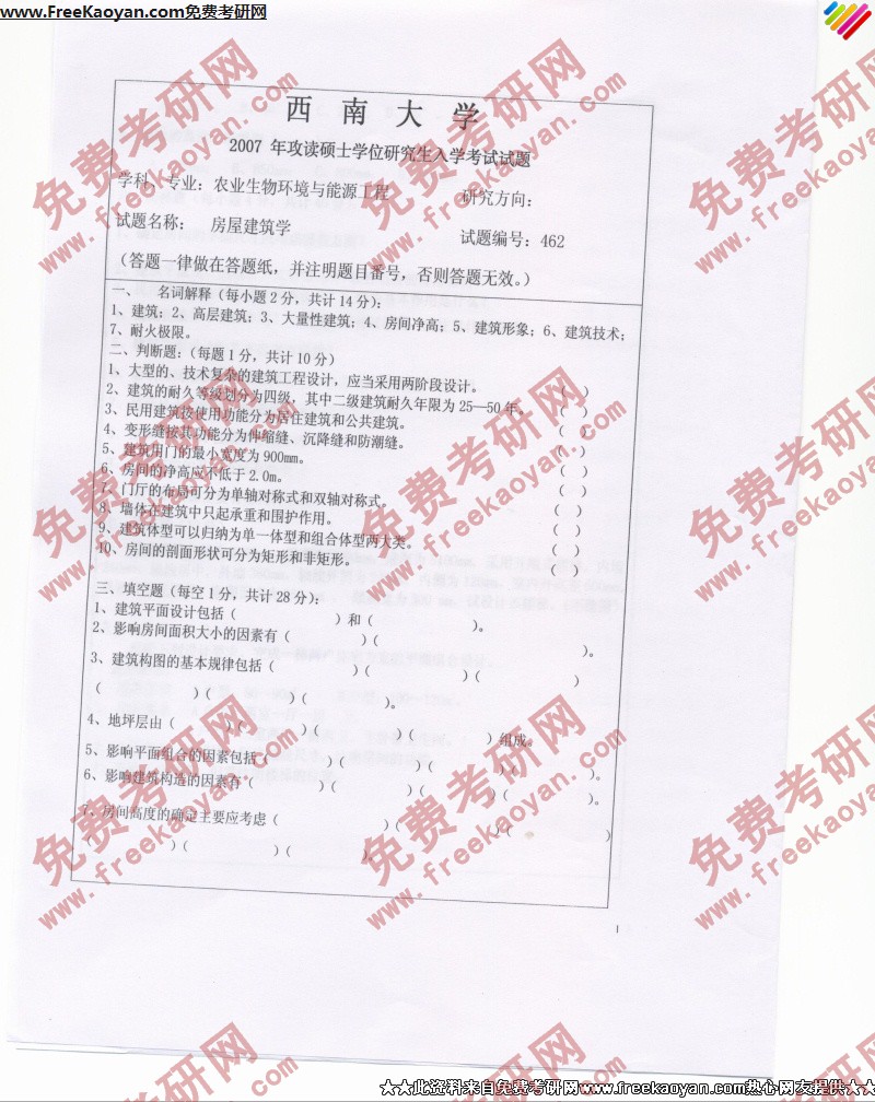 专业课考研经验 本站小编 FreeKaoyan 2018-01-23西南大学2007年考研真题-包装印刷工艺