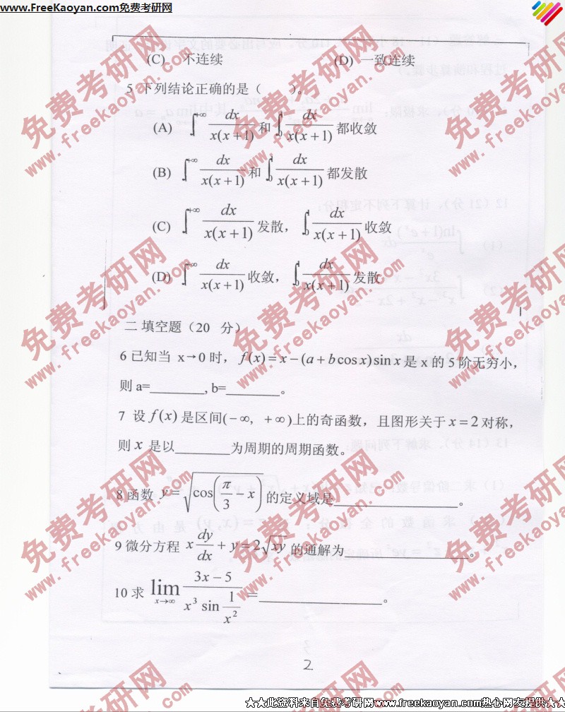 专业课考研经验 本站小编 FreeKaoyan 2018-01-23西南大学2007年考研真题-高等数学