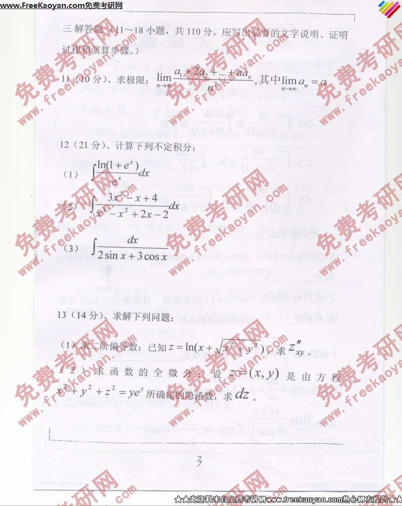 专业课考研经验 本站小编 FreeKaoyan 2018-01-23西南大学2007年考研真题-高等数学
